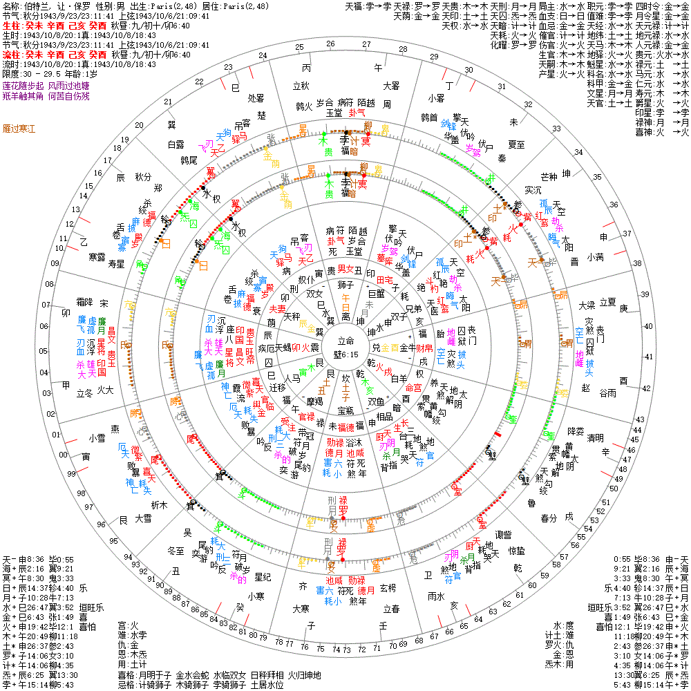 出生阳历:1943/10/8/20:1