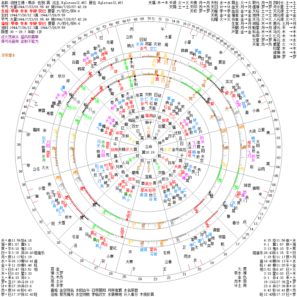 出生阳历:1944/7/26/12:3