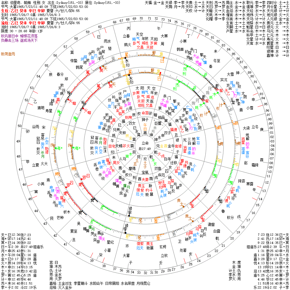 出生阳历:1965/7/26/7:0