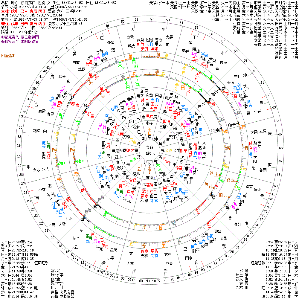 大运:戊午13 丁巳23 丙辰33 乙卯43 甲寅53 癸丑63 壬子73 辛亥83 庚戌93 己酉103