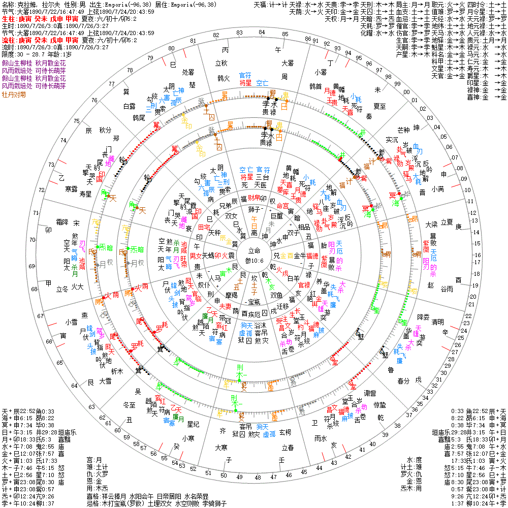 出生阳历:1890/7/26/3:0