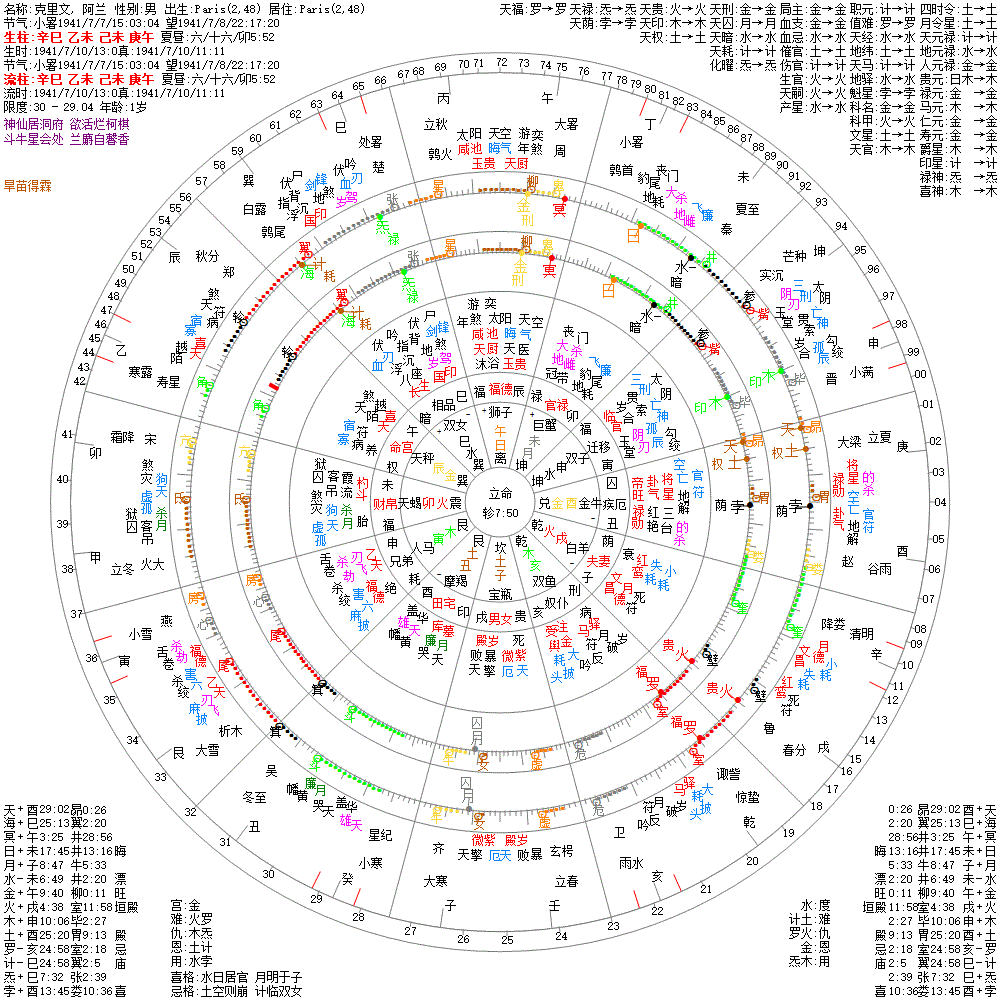 出生阳历:1941/7/10/13:0