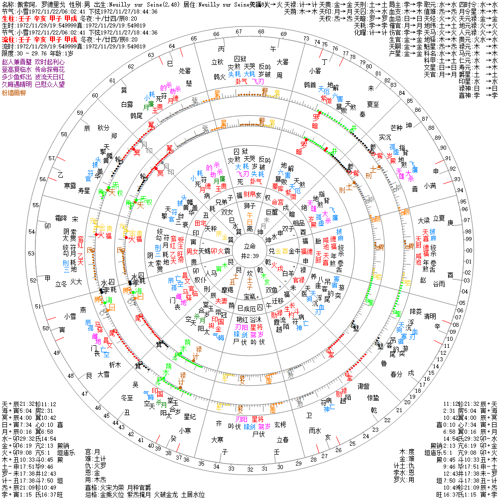 大运:壬子4 癸丑14 甲寅24 乙卯34 丙辰44 丁巳54 戊午64 己未74 庚申84 辛酉94