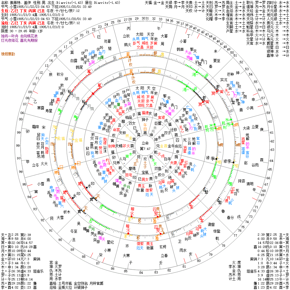 大运:丙戌7 乙酉17 甲申27 癸未37 壬午47 辛巳57 庚辰67 己卯77 戊寅87 丁丑97