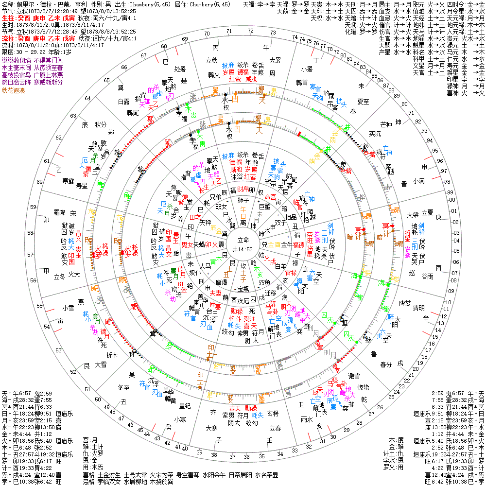 小运:丁丑1 丙子2 乙亥3 甲戌4 癸酉5 壬申6 辛未7 庚午8 己巳9 戊辰10 丁卯11 丙寅12