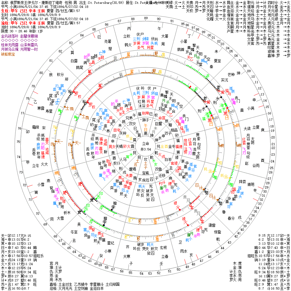 大运:庚午4 辛未14 壬申24 癸酉34 甲戌44 乙亥54 丙子64 丁丑74 戊寅84 己卯94