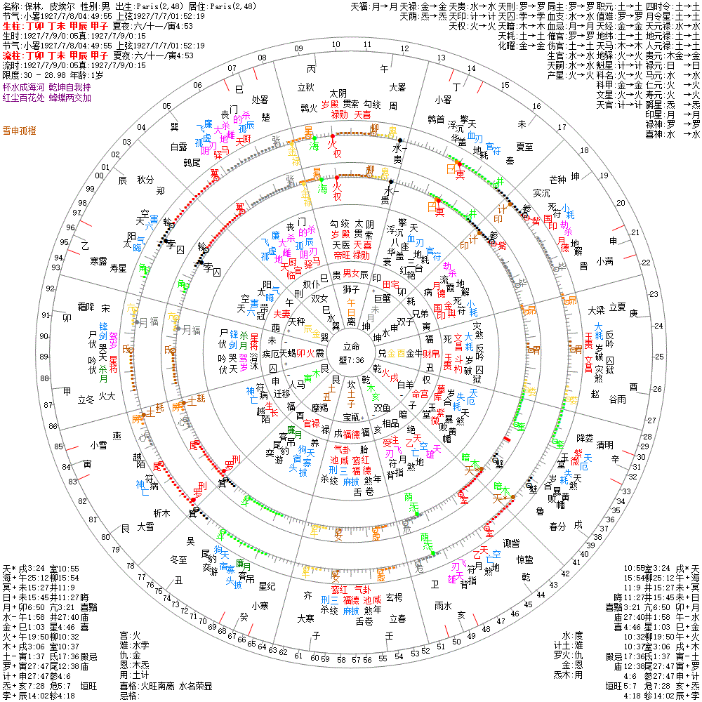 大运:丙午12 乙巳22 甲辰32 癸卯42 壬寅52 辛丑62 庚子72 己亥82 戊戌92 丁酉102