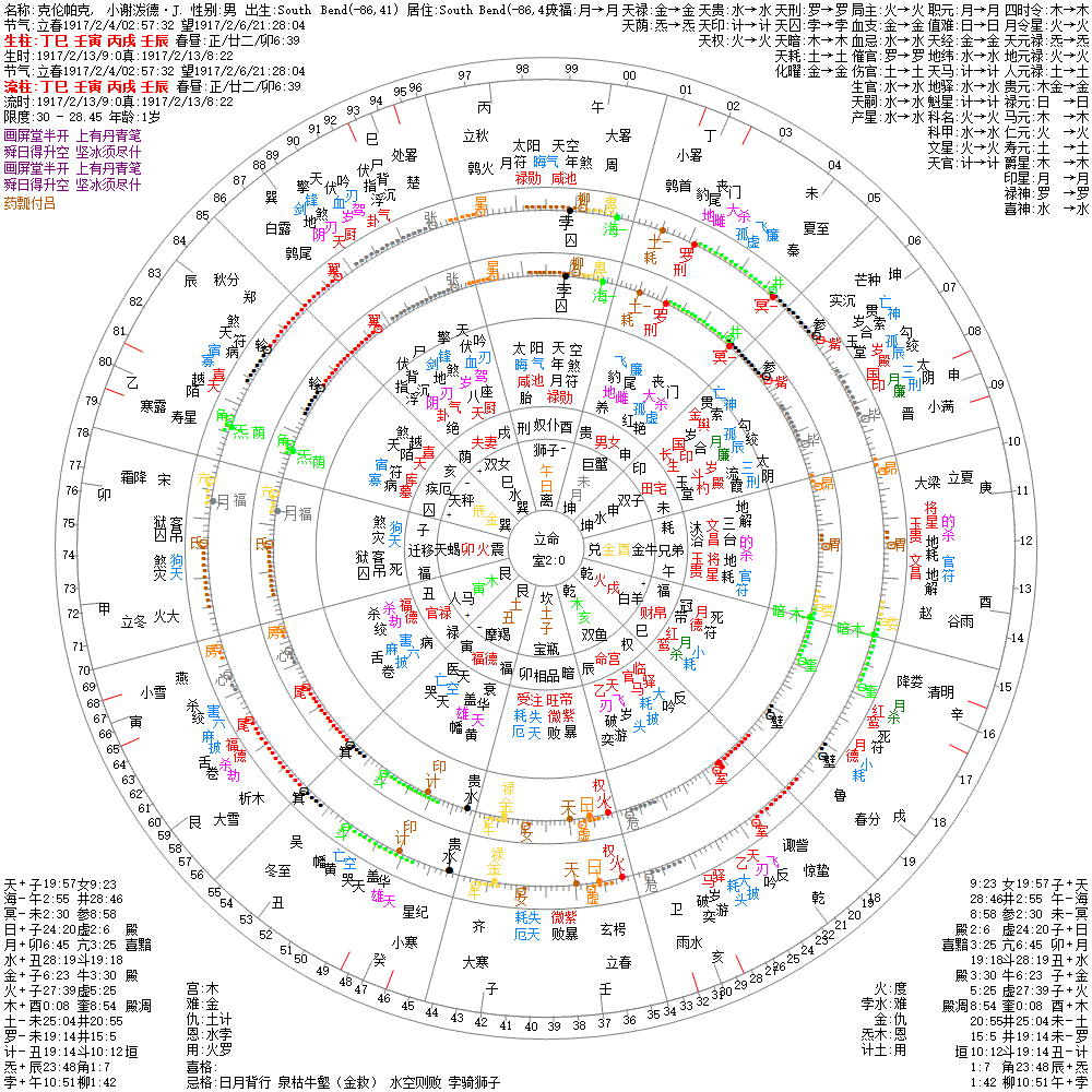 大运:辛丑14 庚子24 己亥34 戊戌44 丁酉54 丙申64 乙未74 甲午84 癸巳94 壬辰104