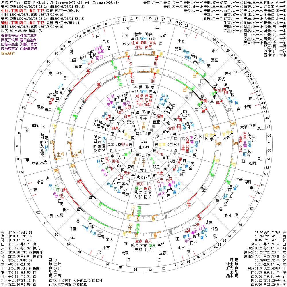 大运:乙巳10 甲辰20 癸卯30 壬寅40 辛丑50 庚子60 己亥70 戊戌80 丁酉90 丙申100