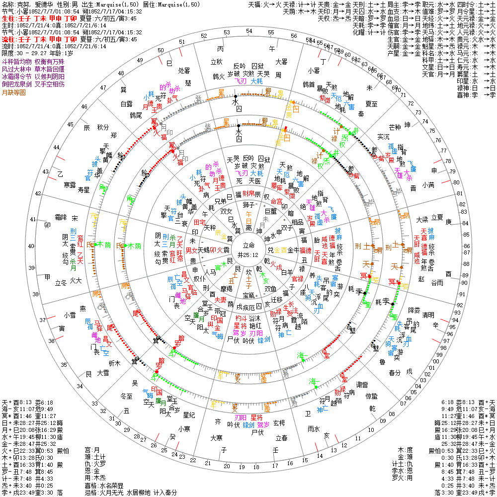 日躔命度:度主与日同躔,不强而自强。男则大多为所在行业领袖,或高人一等处于突出社会地位。女则常有男子威严,亦可言贵。