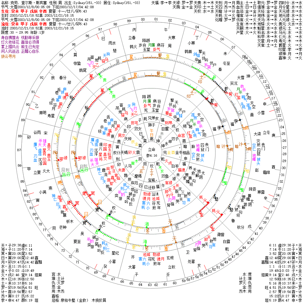 小运:庚申1 己未2 戊午3 丁巳4 丙辰5 乙卯6 甲寅7 癸丑8 壬子9 辛亥10 庚戌11 己酉12 戊申13 丁未14 丙午15