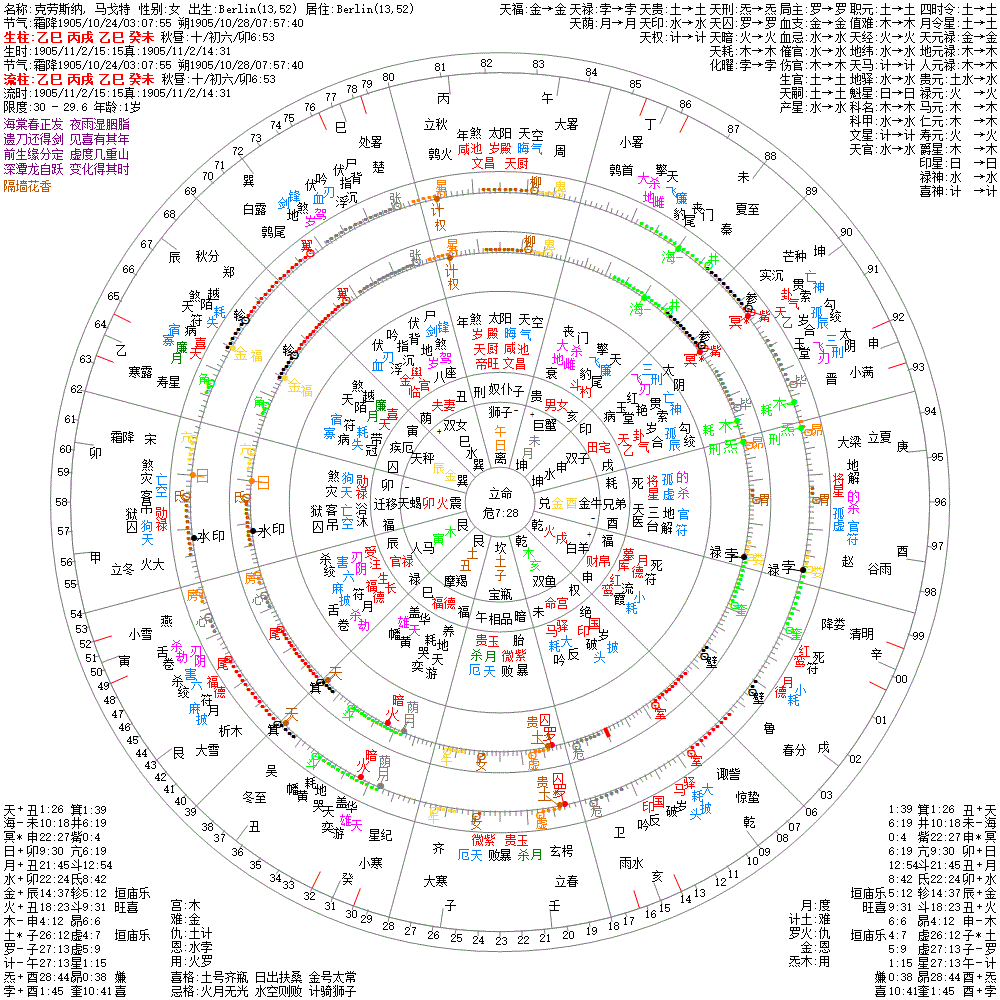 出生阳历:1905/11/2/15:15