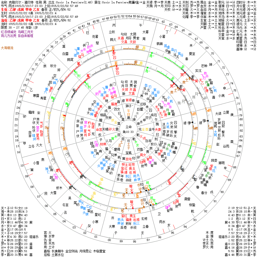 大运:丁丑8 丙子18 乙亥28 甲戌38 癸酉48 壬申58 辛未68 庚午78 己巳88 戊辰98