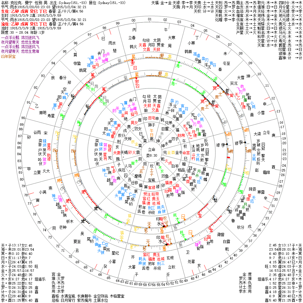 大运:丁丑10 丙子20 乙亥30 甲戌40 癸酉50 壬申60 辛未70 庚午80 己巳90 戊辰100