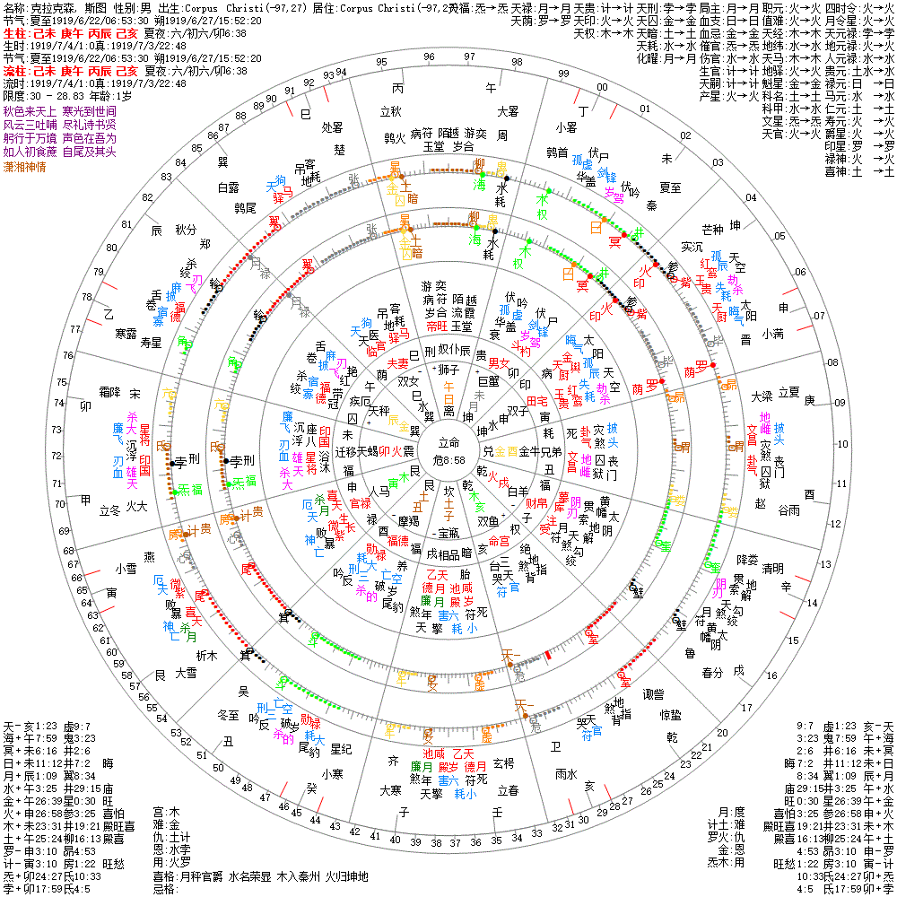 出生阳历:1919/7/4/1:0