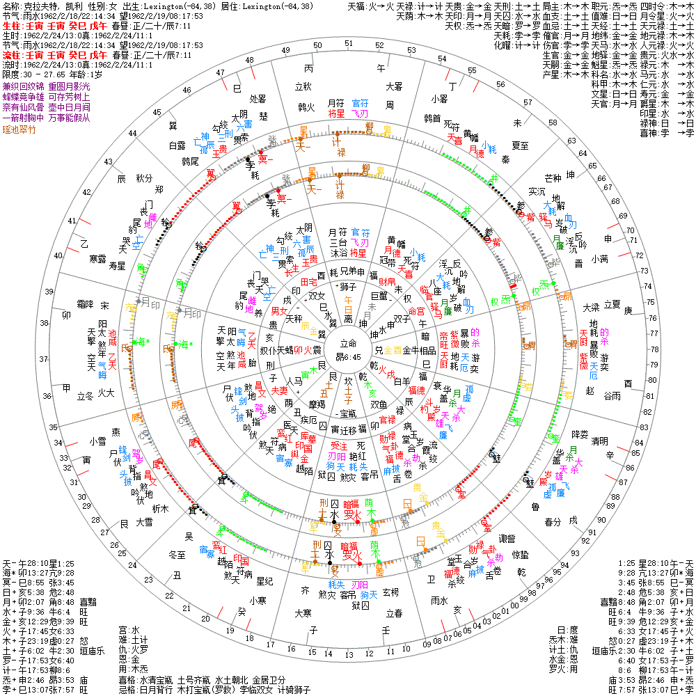 大运:辛丑8 庚子18 己亥28 戊戌38 丁酉48 丙申58 乙未68 甲午78 癸巳88 壬辰98