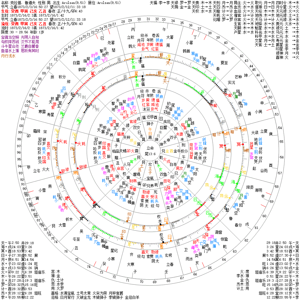 大运:癸丑15 壬子25 辛亥35 庚戌45 己酉55 戊申65 丁未75 丙午85 乙巳95 甲辰105