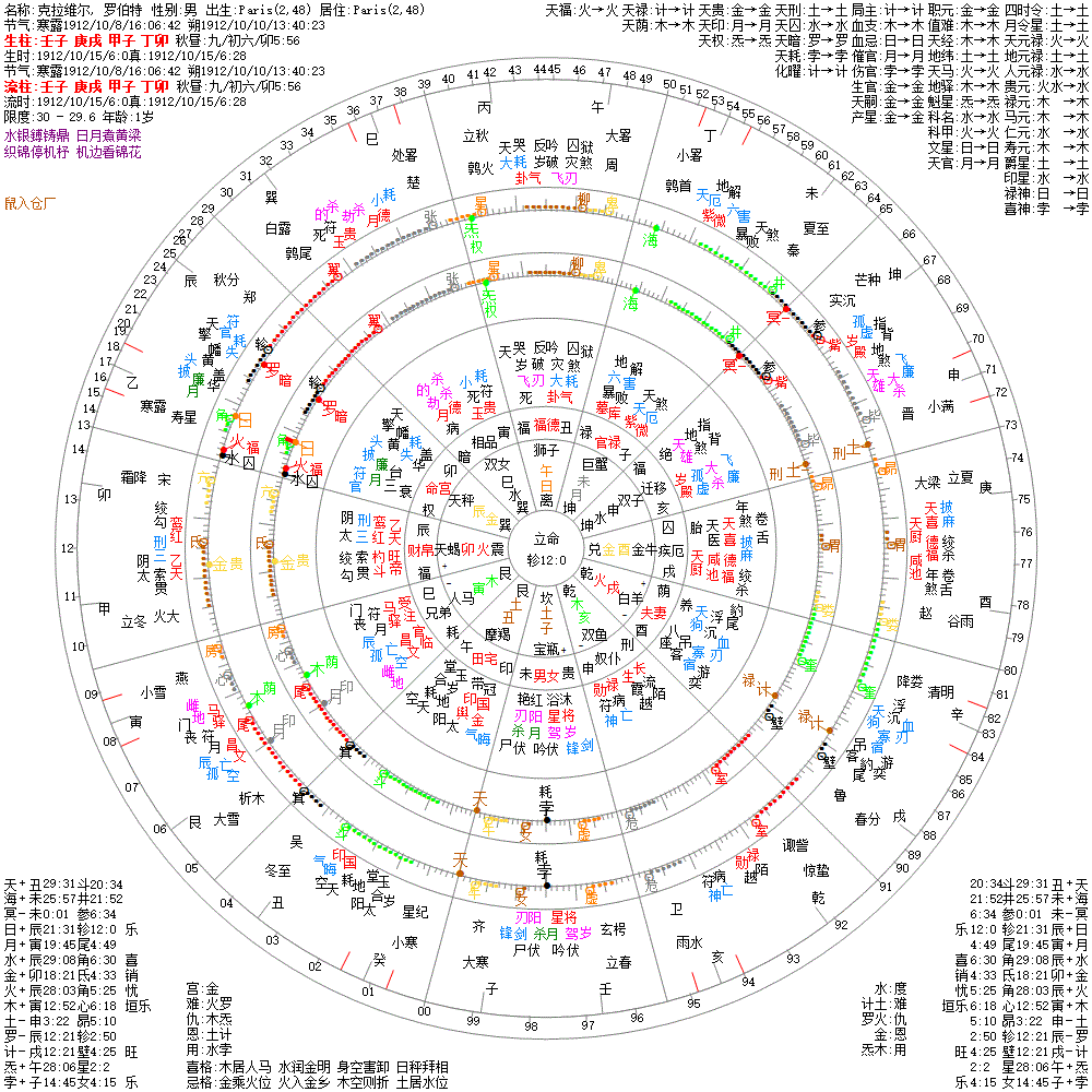 大运:辛亥9 壬子19 癸丑29 甲寅39 乙卯49 丙辰59 丁巳69 戊午79 己未89 庚申99