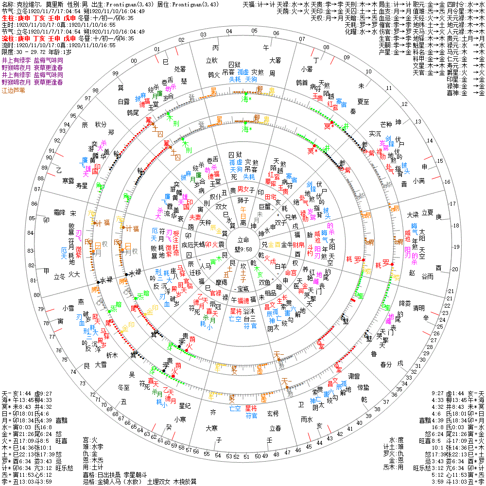 大运:戊子10 己丑20 庚寅30 辛卯40 壬辰50 癸巳60 甲午70 乙未80 丙申90 丁酉100