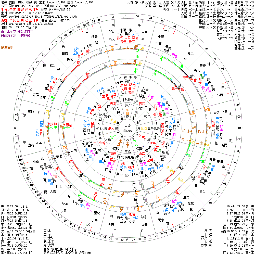 大运:己丑9 戊子19 丁亥29 丙戌39 乙酉49 甲申59 癸未69 壬午79 辛巳89 庚辰99