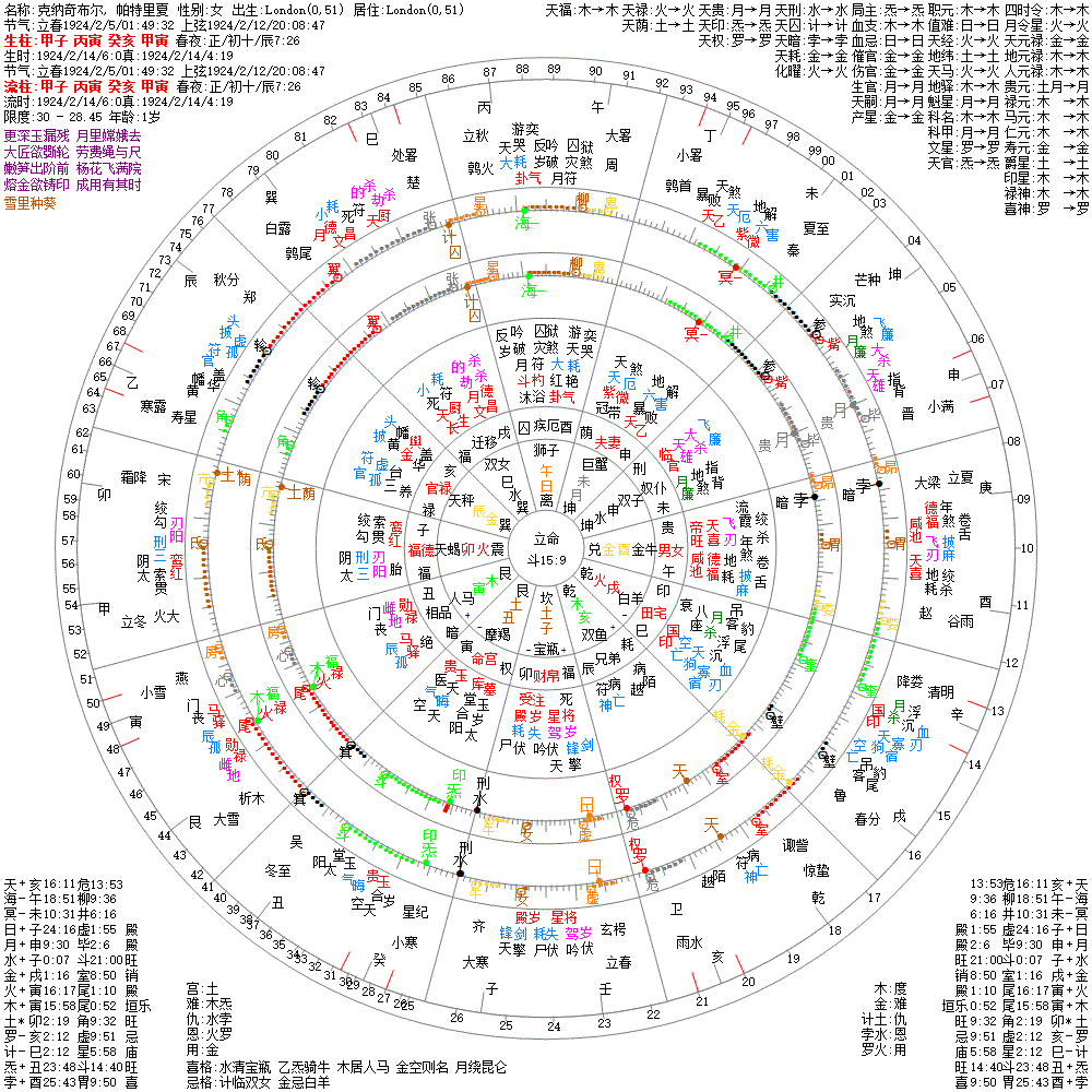 大运:乙丑14 甲子24 癸亥34 壬戌44 辛酉54 庚申64 己未74 戊午84 丁巳94 丙辰104