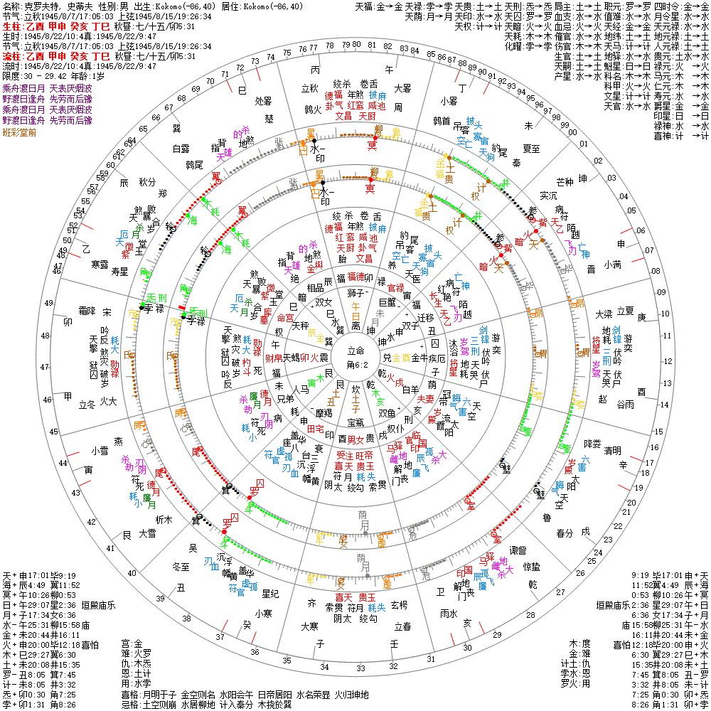 出生阳历:1945/8/22/10:4
