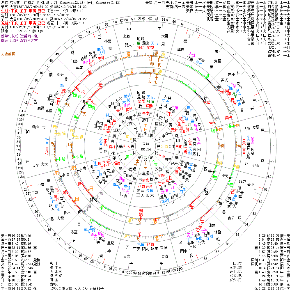 大运:辛亥14 庚戌24 己酉34 戊申44 丁未54 丙午64 乙巳74 甲辰84 癸卯94 壬寅104