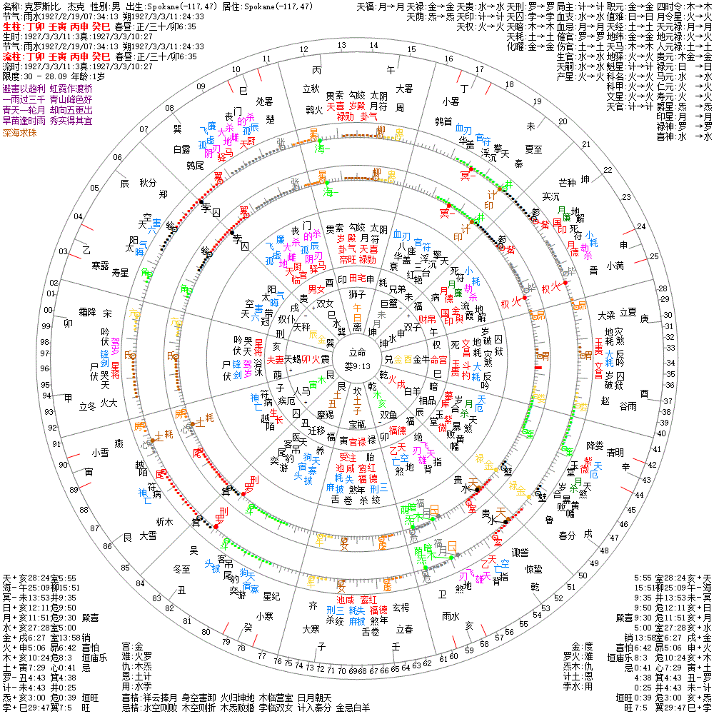 大运:辛丑10 庚子20 己亥30 戊戌40 丁酉50 丙申60 乙未70 甲午80 癸巳90 壬辰100