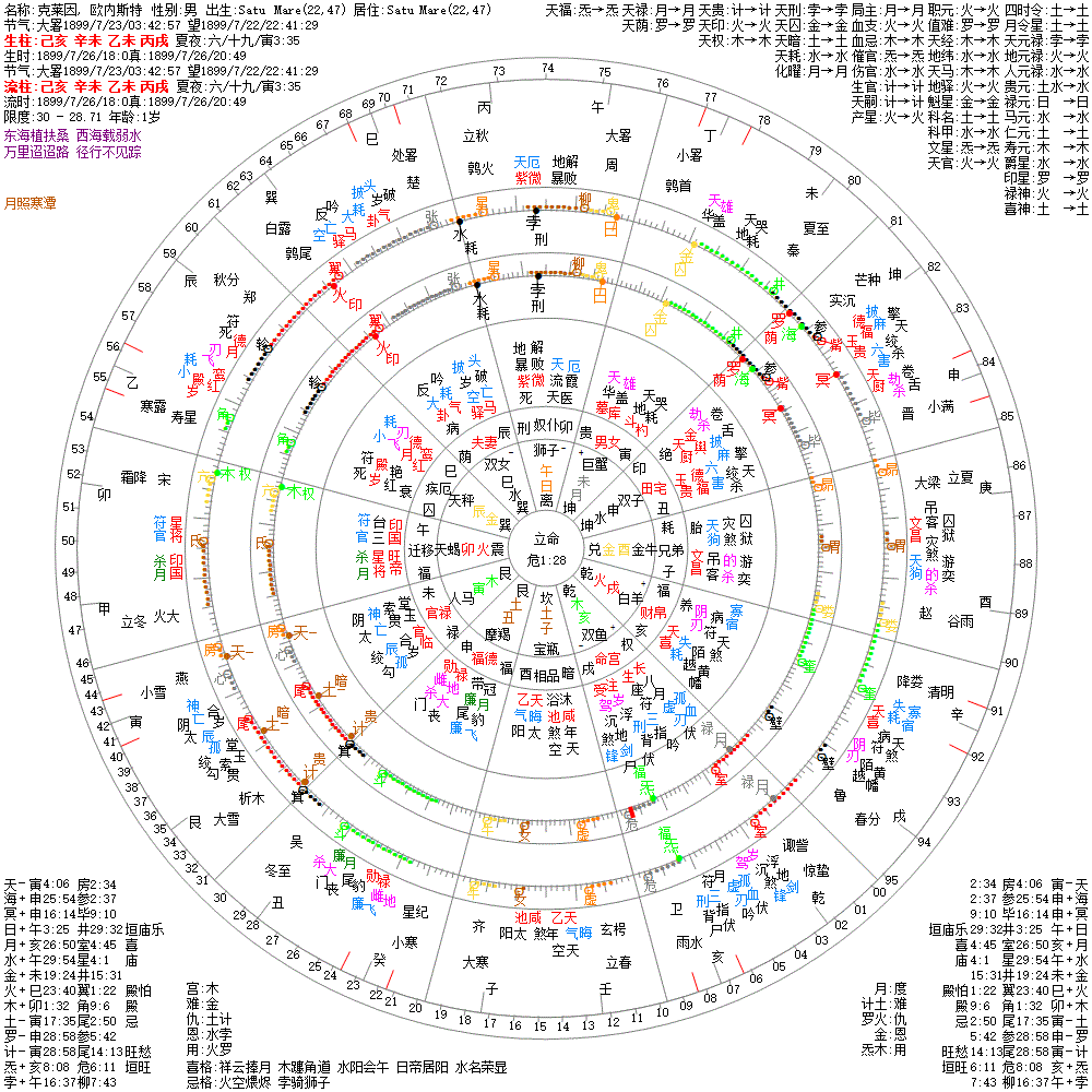 大运:庚午8 己巳18 戊辰28 丁卯38 丙寅48 乙丑58 甲子68 癸亥78 壬戌88 辛酉98