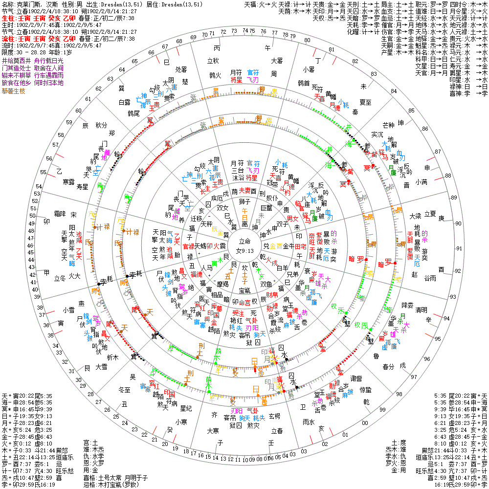 大运:癸卯10 甲辰20 乙巳30 丙午40 丁未50 戊申60 己酉70 庚戌80 辛亥90 壬子100